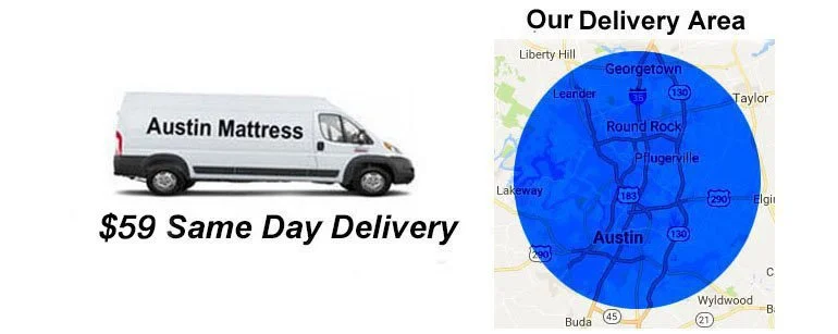 We deliver same day Tuesday through Saturday. Order by 5 p.m. and get your mattress by 9pm. If you order online Sunday or Monday you will receive your mattress Tuesday before 9pm.